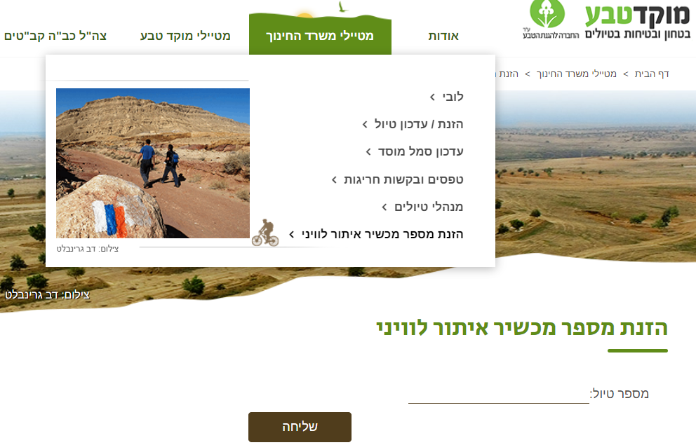 יש לפעול על פי ההנחיות במדריך המופיע ב מרכז מידע למטייל -> דפי מידע -> מוקד טבע און-ליין.